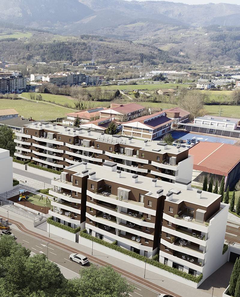 Residencial Elizoste se encuentra en una de las mejores zonas de Iurreta, en la calle Olaburu, a 200 metros del ayuntamiento, una zona residencial muy tranquila, pero con todos los servicios cerca. Está compuesto por 60 viviendas de 2 y 3 dormitorios que han sido especialmente diseñadas para disfrutar de cada una de sus estancias.